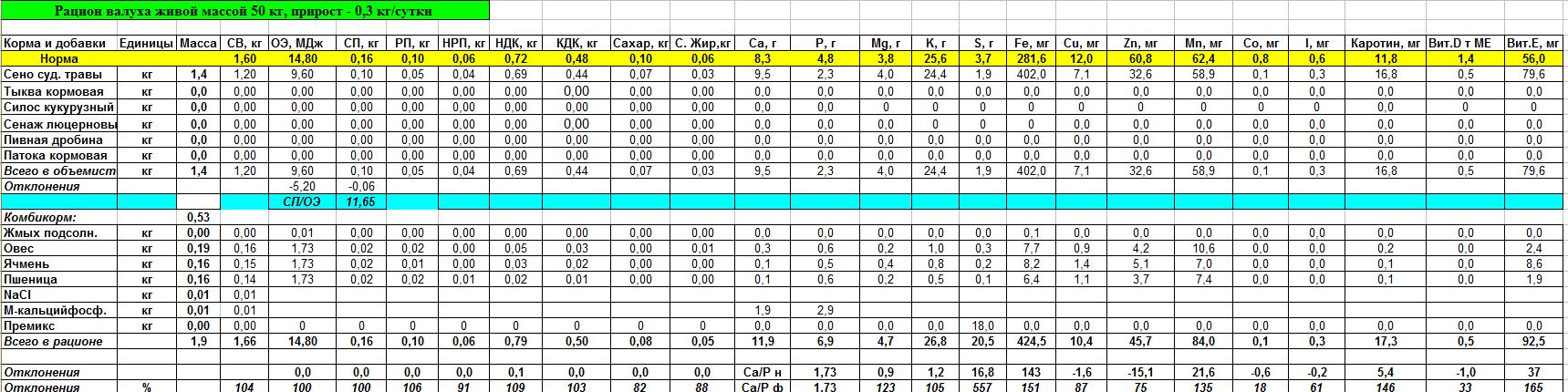 Пример рациона для овец и коз